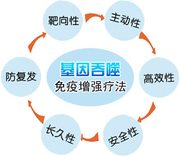 “基因吞噬免疫增强疗法”是针对Ⅱ型单纯疱疹病毒易复发,复制快,依附伪装等特性,经过美国等全球众多知名科学家多年研究的最先进的基因治疗技术。在2010年国际性病诊疗高峰论坛推荐的疱疹治疗的重要科研成果。它打破传统治疗方法很难凑效,无法根治的困境。“基因吞噬免疫增强疗法”治疗生殖器疱疹以来,取得了重大的突破,创造出有效治疗复发性生殖器疱疹的医学奇迹,治疗数万余例疱疹患者,为传播疾病治疗医学史上谱写了一部新的历史篇章。